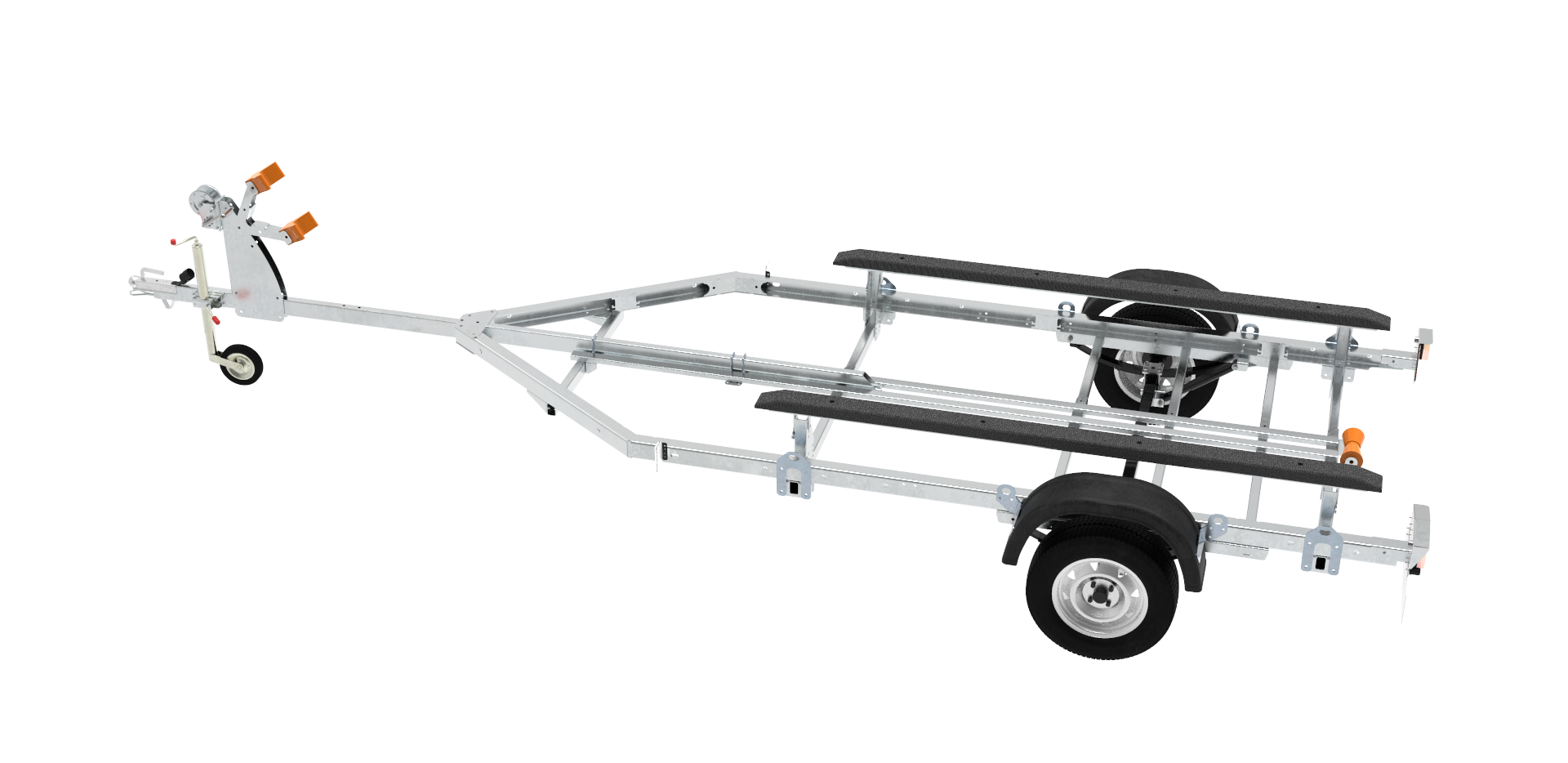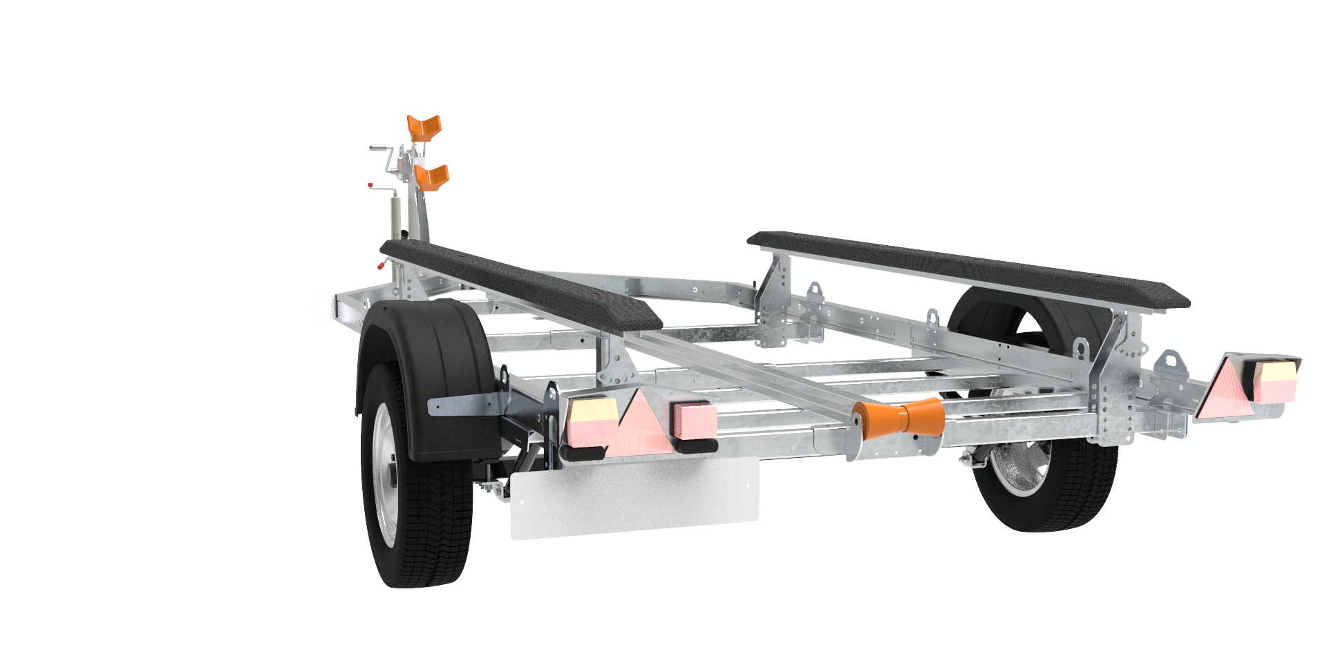 Тип подвески: рессорная с гидравлическими телескопическими амортизаторами. Изменяемое положение подвески (шасси) прицепа позволяет правильно распределить центр тяжести судна.