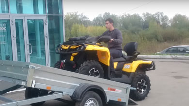 Мы делаем прицепы не только общего назначения, но также и для перевозки спецтехники. Это специальные прицепы с усиленной рамой и увеличенными габаритами для комфортной перевозки вашего квадроцикла или снегохода. На нашем видео наглядно показано как легко квадроцикл заезжает на Прицеп Экспедиция Бизнес.